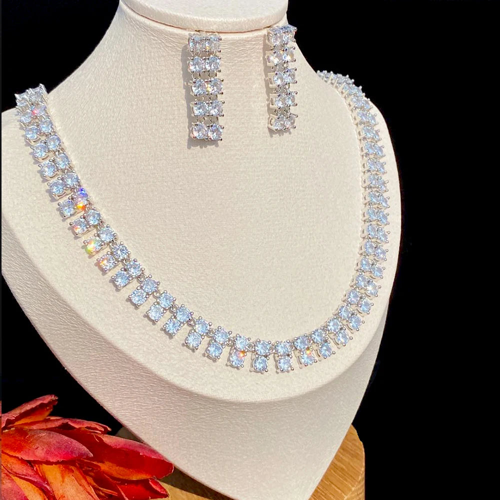High Quality Marquise Cut Cubic Zirconia Wedding Necklace and Earrings Set