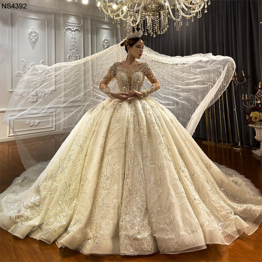 Hot Sale Luxury Princess Ball Gown Wedding Dress with Elegant Long Sleeves