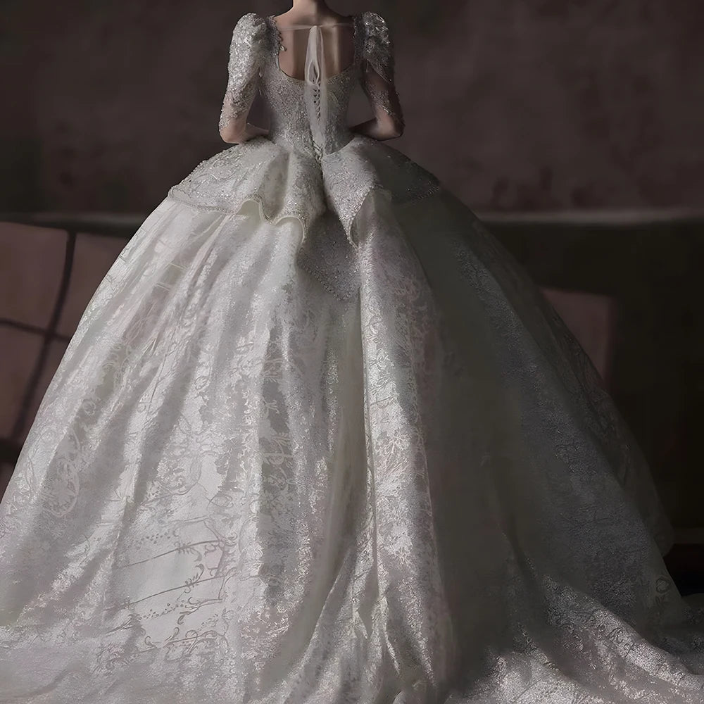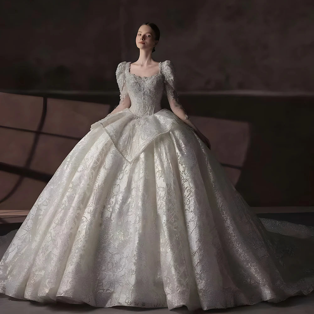 Luxury International Ball Gown Wedding Dress Square Collar Backless