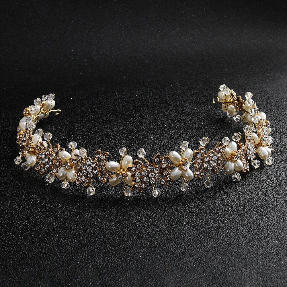 Korean Pearl Flower Bridal Hairband – Handmade Wedding Tiara