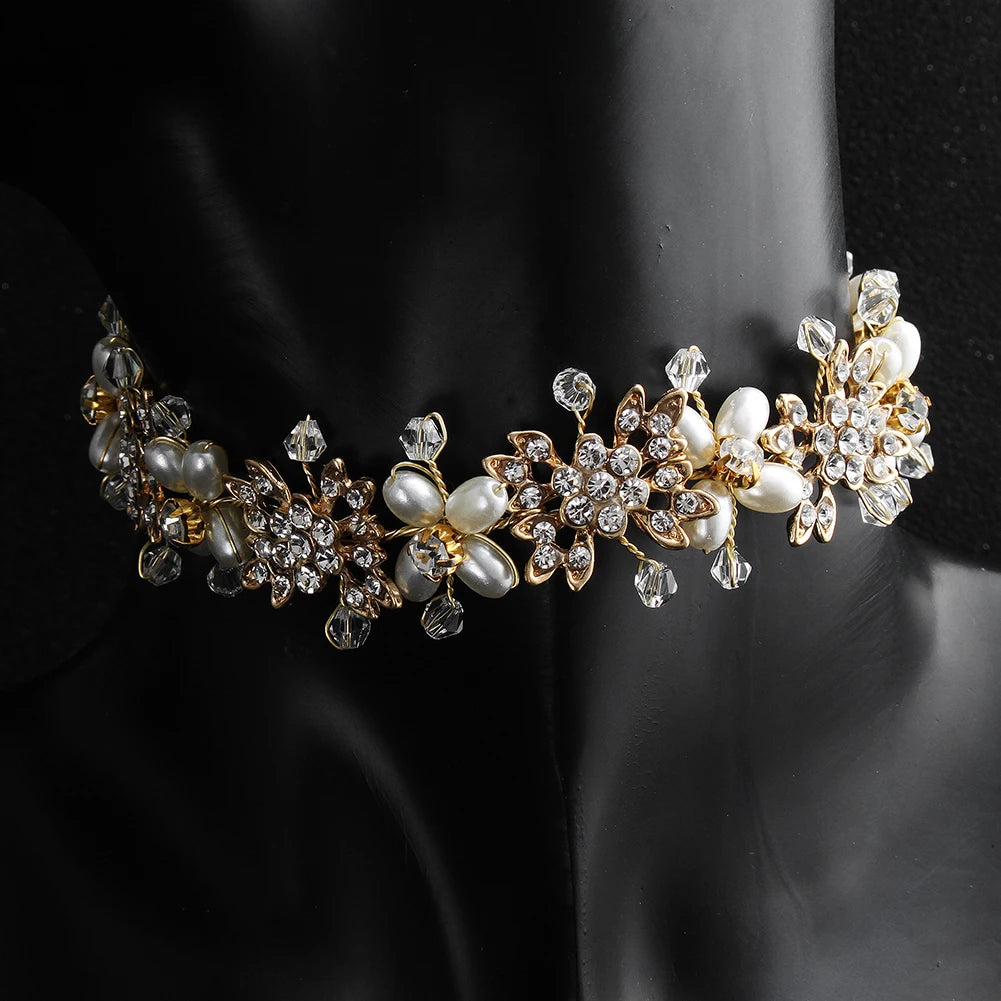 Elevate your bridal look with this exquisite Korean alloy flower and pearl hairband. Handcrafted with elegance, it's perfect for weddings, parties, and special occasions.