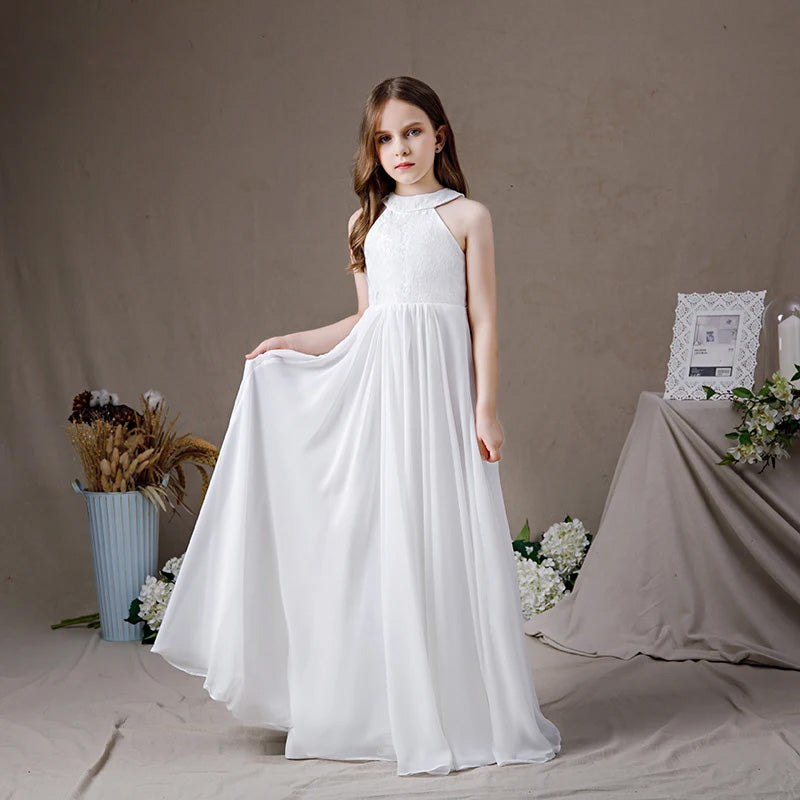 Lace Chiffon Sleeveless Halter Flower Girl First Communion Dress