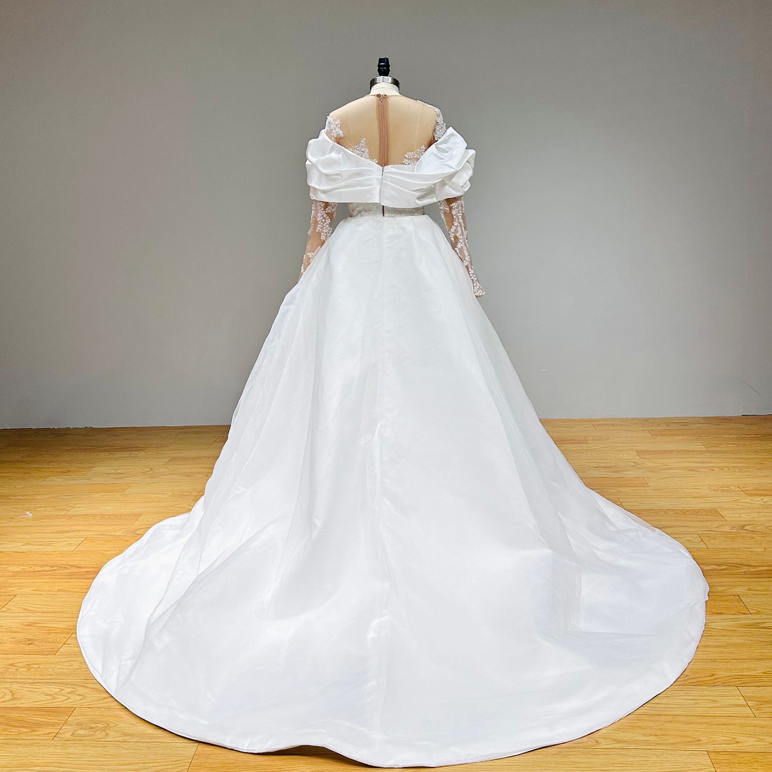Long Sleeve Mermaid Wedding Dress with Detachable Train and Beading Appliques