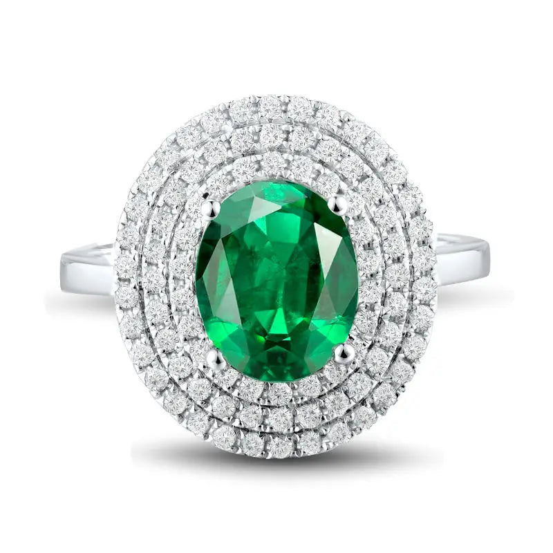 Celebrate love and elegance with this 14K White Gold Oval-Cut Emerald Ring, accented by sparkling diamonds for timeless beauty. Perfect for special occasions, its refined design and deep green hue make it a meaningful and luxurious gift.