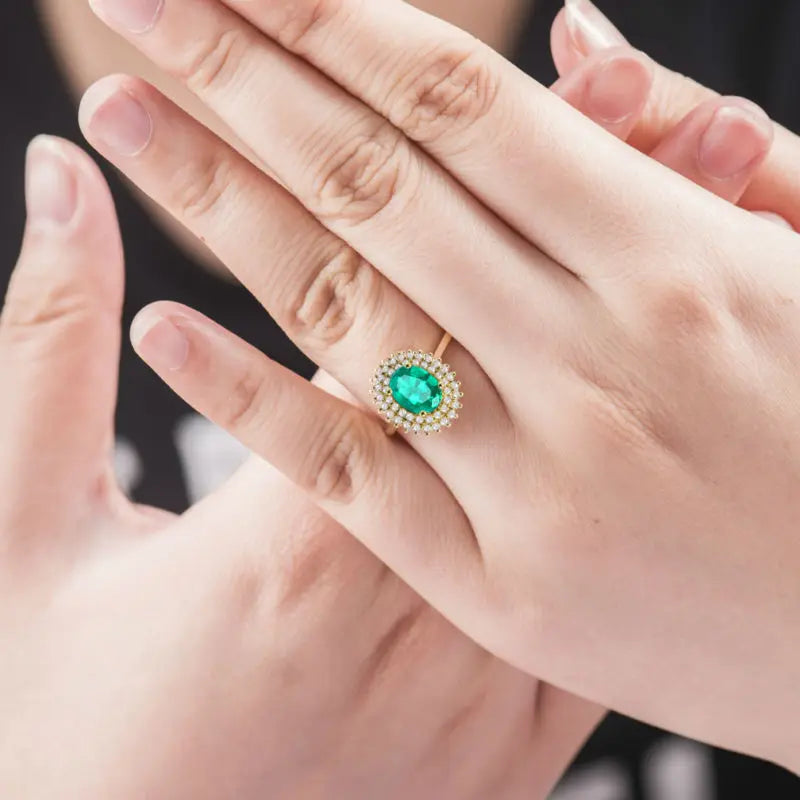 Mark a cherished milestone with our 18KT Yellow Gold Emerald & Diamond Anniversary Ring. Featuring a vibrant emerald surrounded by brilliant diamonds, this timeless piece symbolizes love, growth, and enduring elegance—perfect for unforgettable celebrations.