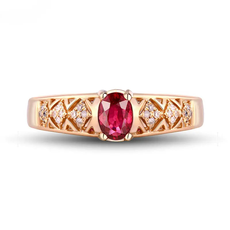 Ruby Oval 4x6mm Gemstone 14K Rose Gold Diamond Wedding Ring for Women