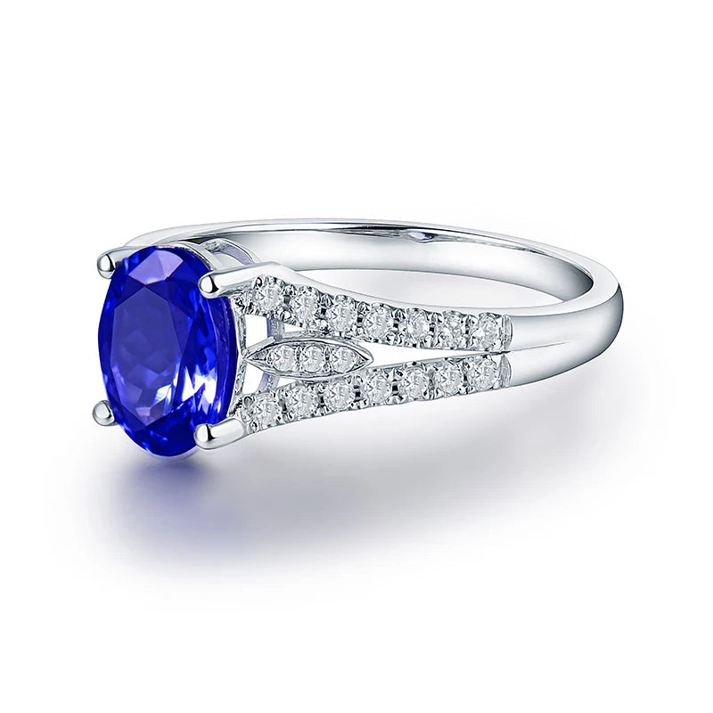 Natural Tanzanite Ring 14Kt White Gold with Diamonds for Women