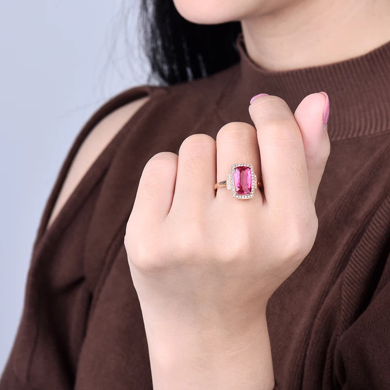 18K Rose Gold Pink Tourmaline Diamond Ring – Engagement, Wedding, Mother’s Gift