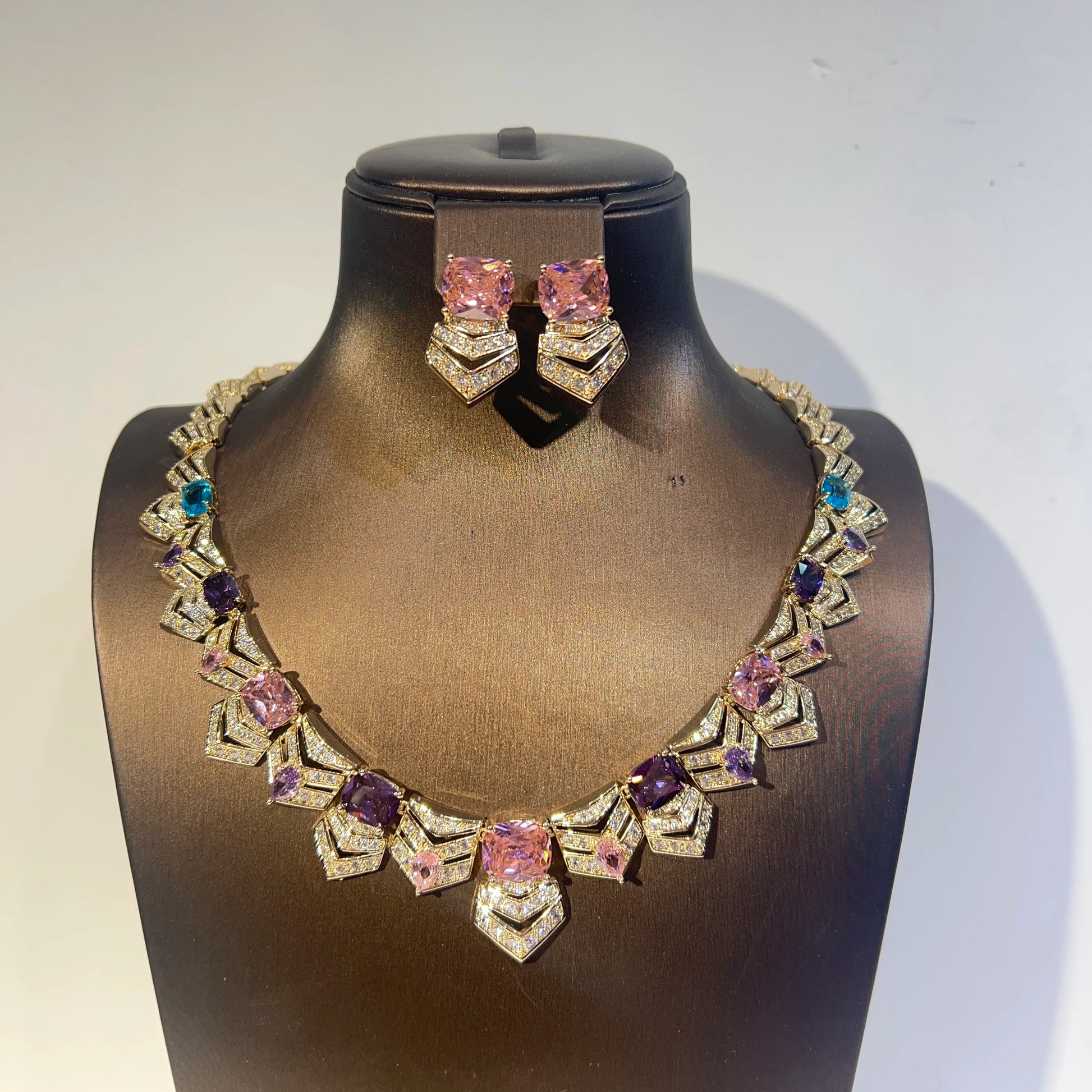 Elevate your bridal look with this luxury wedding jewelry set featuring elegant round-shaped colored pearls. Perfect for brides, bridesmaids, or engagement gifts, it adds timeless charm and sophistication to any special occasion.
