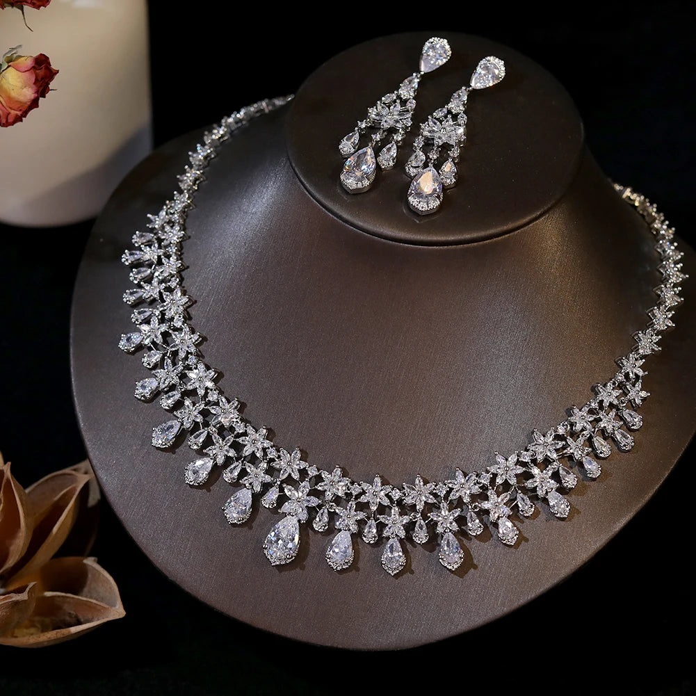 Luxury Crystal Flower Jewelry Set for Brides – Necklace and Earrings for Wedding or Party