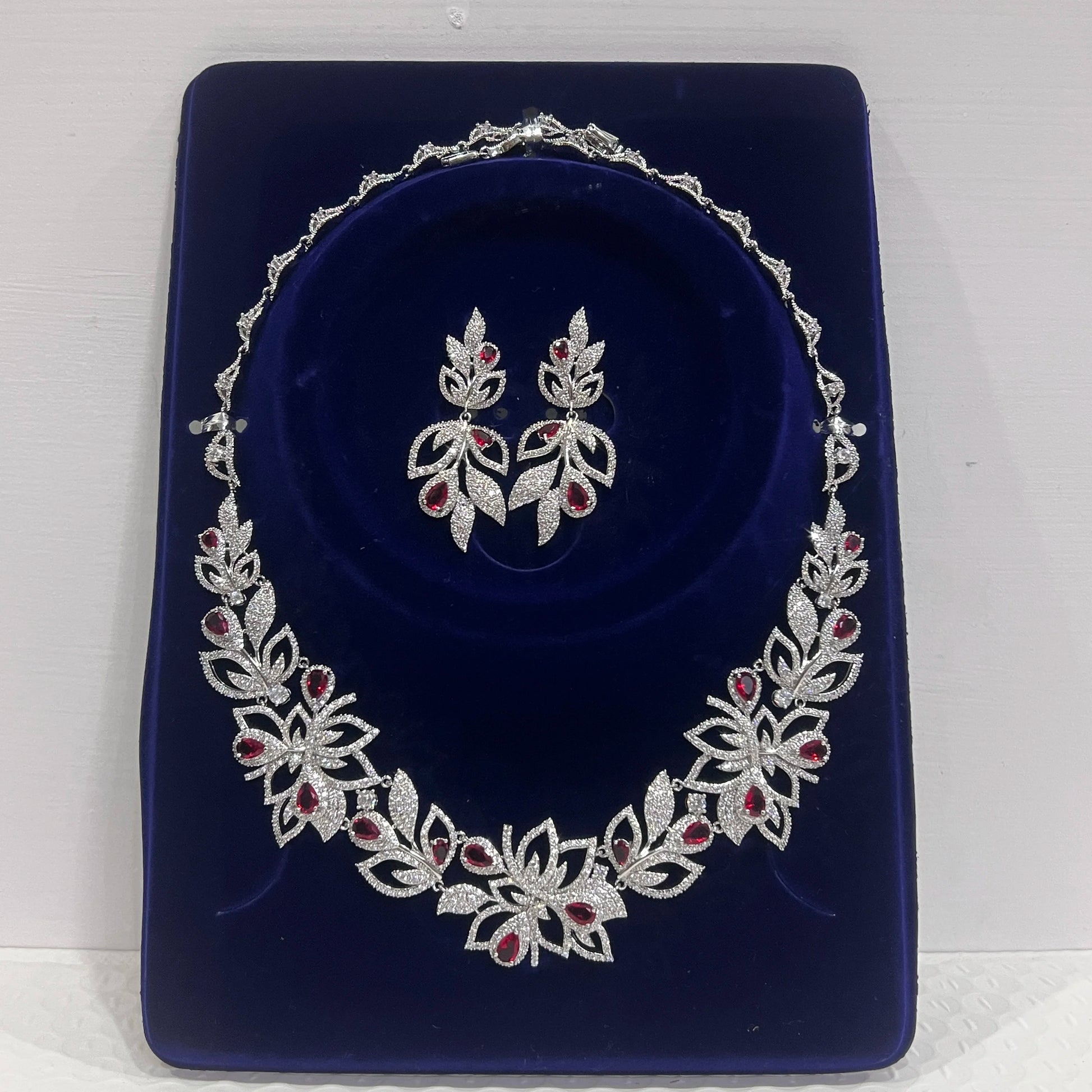 Luxury Crystal Red Flower Zircon Necklace & Earring Set for Brides