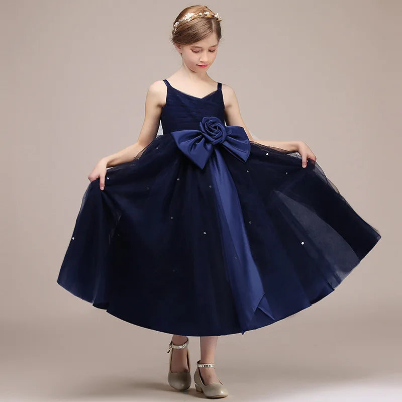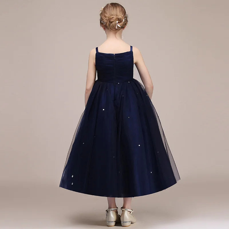 Navy Blue Tulle Princess Party Dress for Girls – Birthday & Formal Gown