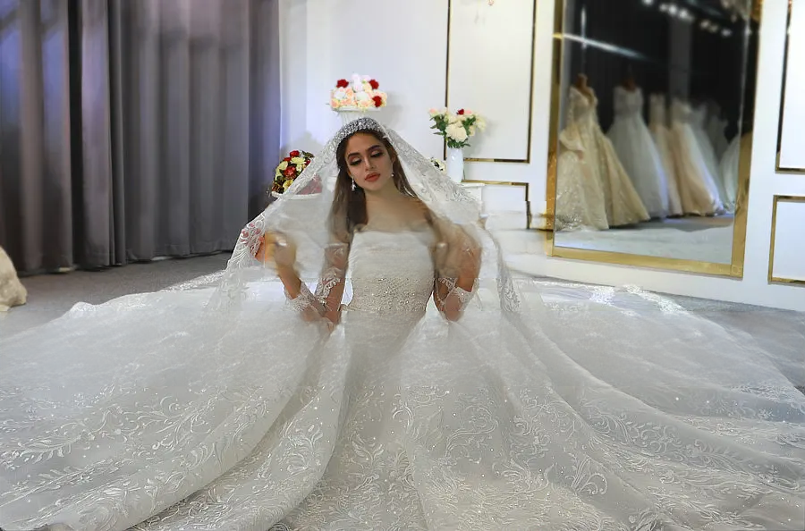Embrace timeless elegance with this off-the-shoulder long sleeve lace wedding dress, designed to make every bride feel stunning on her special day. The intricate lace detailing and flattering silhouette create a romantic, unforgettable look for your wedding.