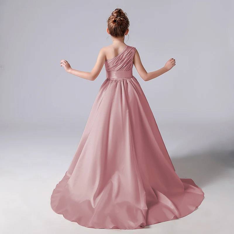 One Shoulder Flower Girl Dress Wedding Party Ball Gown Princess Formal Dress