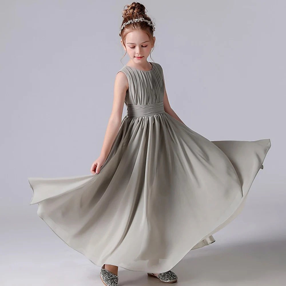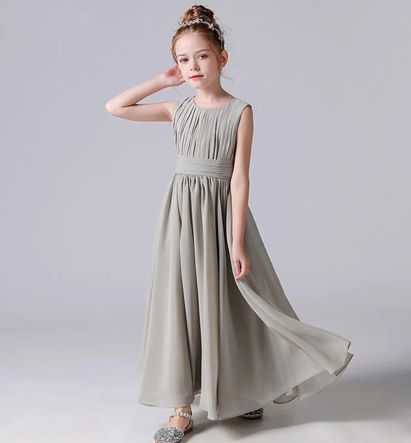 Elegant pleated flower girl dresses with sash detailing—perfect for weddings, parties, and pageants. Soft, durable fabric ensures comfort with timeless style.
