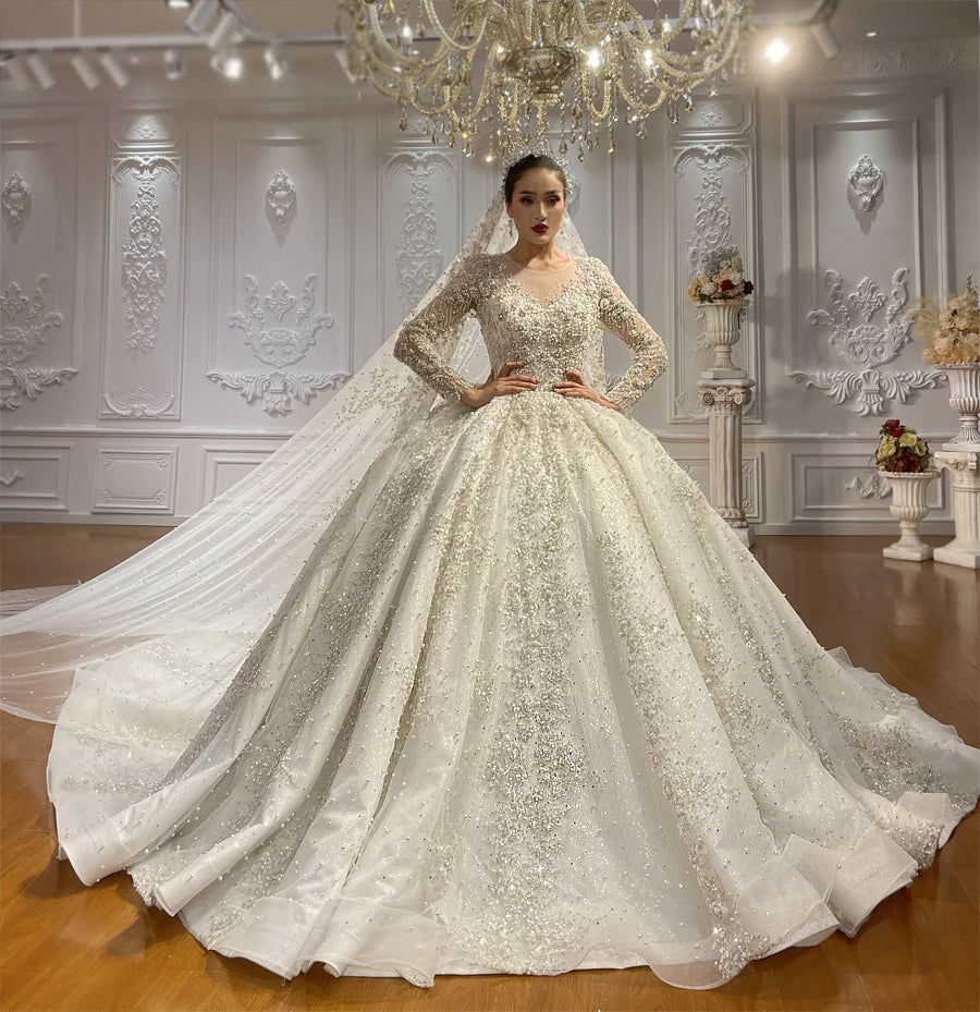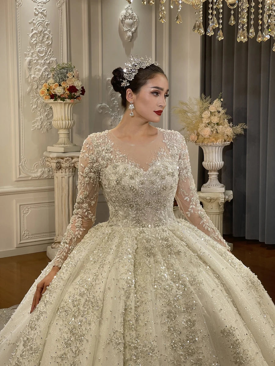 Plus Size Ball Gown Wedding Dress for Women with Long Sleeves Elegant Bridal Gown