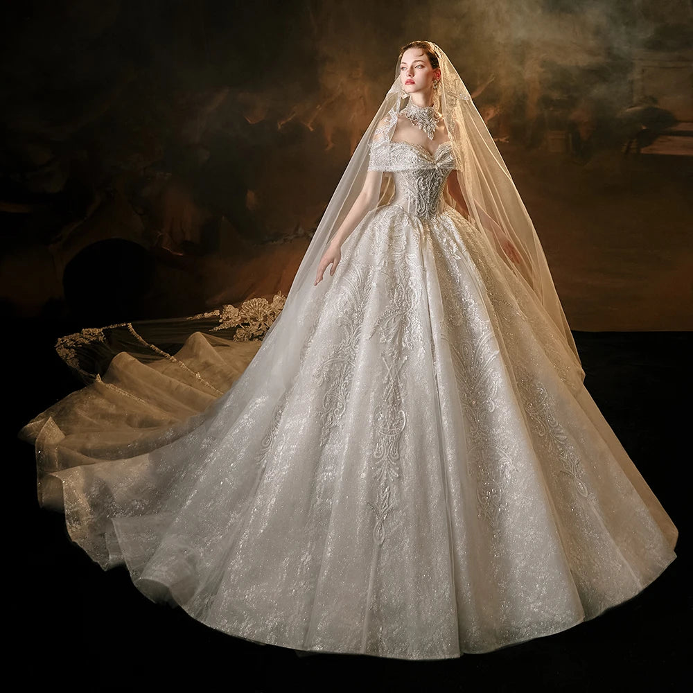 Step into your fairy tale with the Princess Surprise Wedding Dress, featuring a flattering sweetheart neckline, sparkling sequins, short sleeves, and intricate beading for timeless elegance. With a lace-up back for a perfect fit, this gown blends classic charm and modern glamour to make your special day unforgettable.