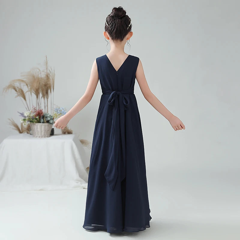 This elegant purple chiffon flower girl dress features a sleeveless design with charming pleated details, perfect for weddings and special occasions. Lightweight and comfortable, it ensures your little one looks and feels her best while creating timeless memories.