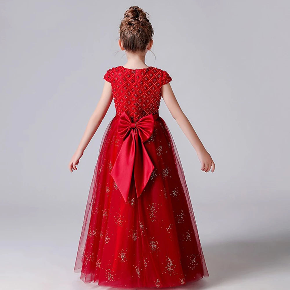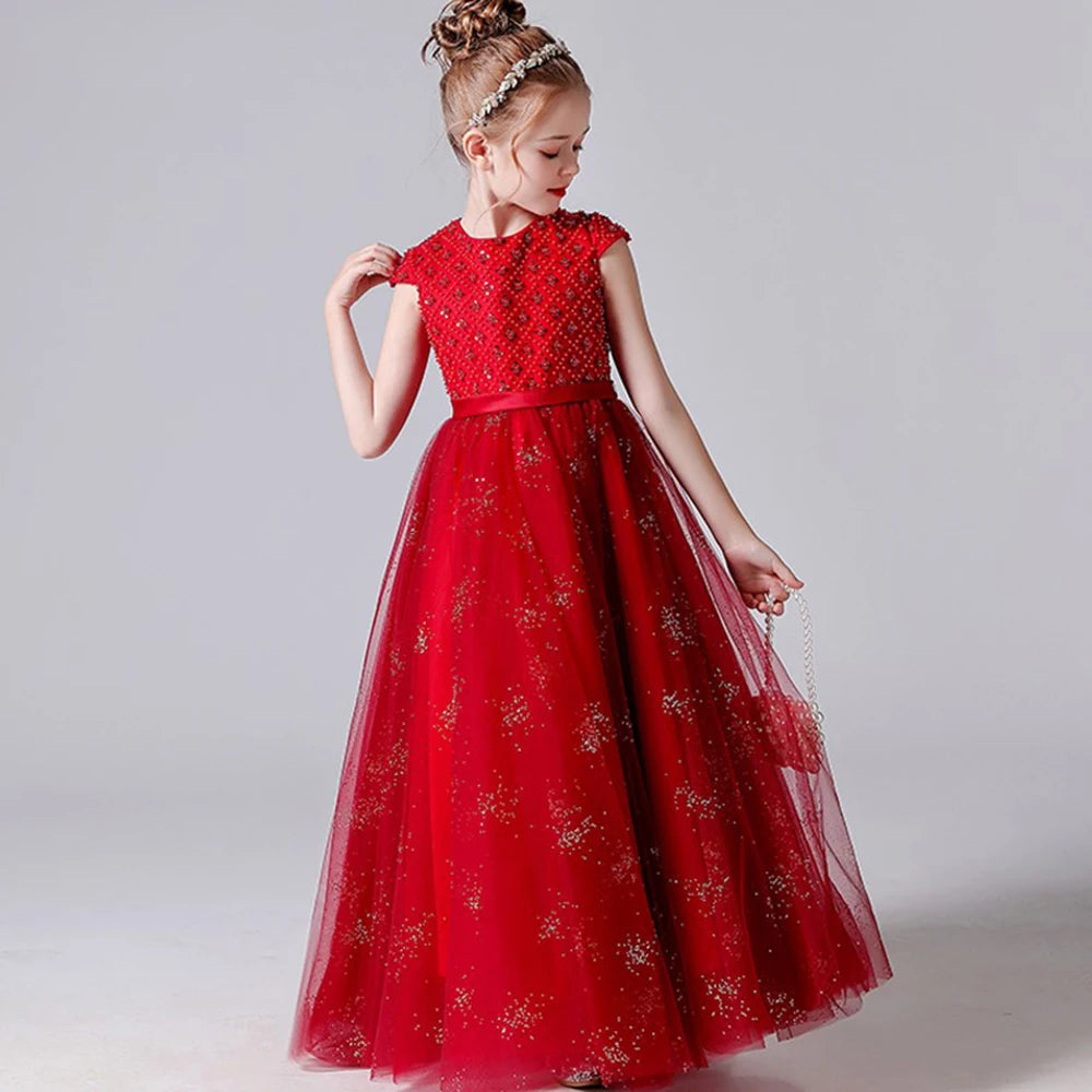 Red Sparkly Flower Girl Dress Christmas Junior Princess Gown for Wedding Pageant