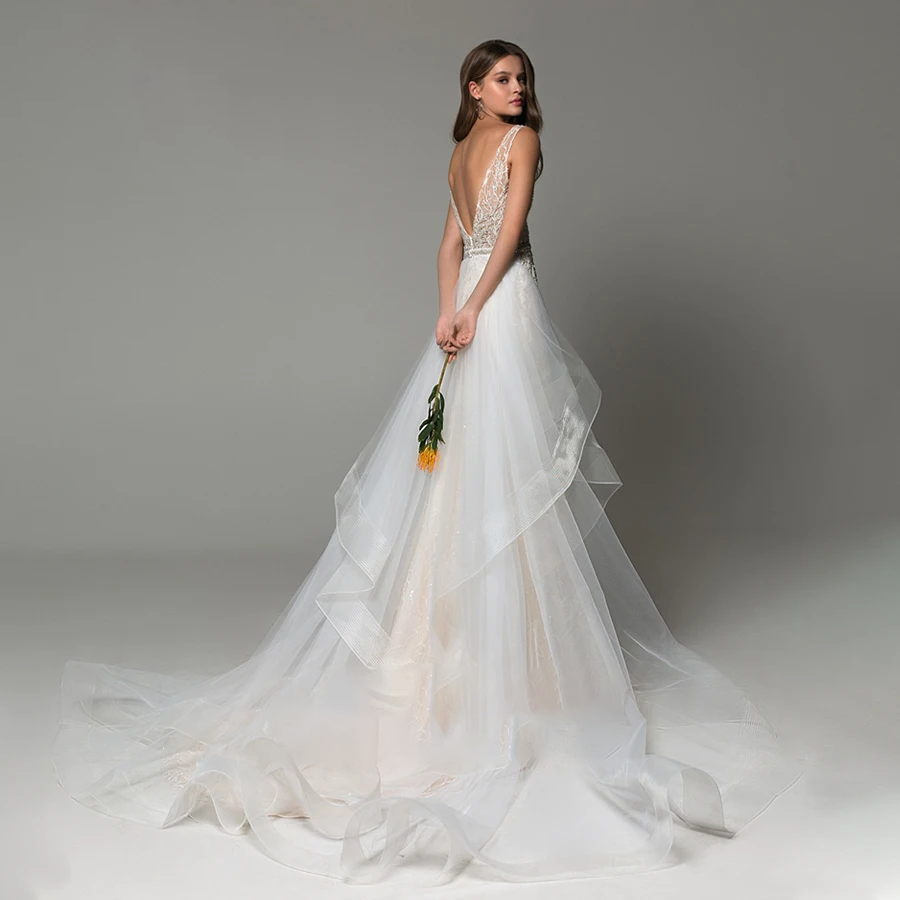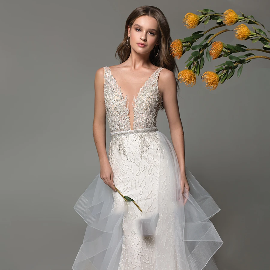 Sexy Mermaid Wedding Dress New Detachable Train Shimmering Beadied V-Neck Backless Sleeveless Wedding Gown