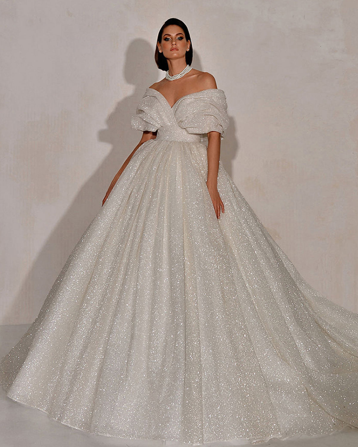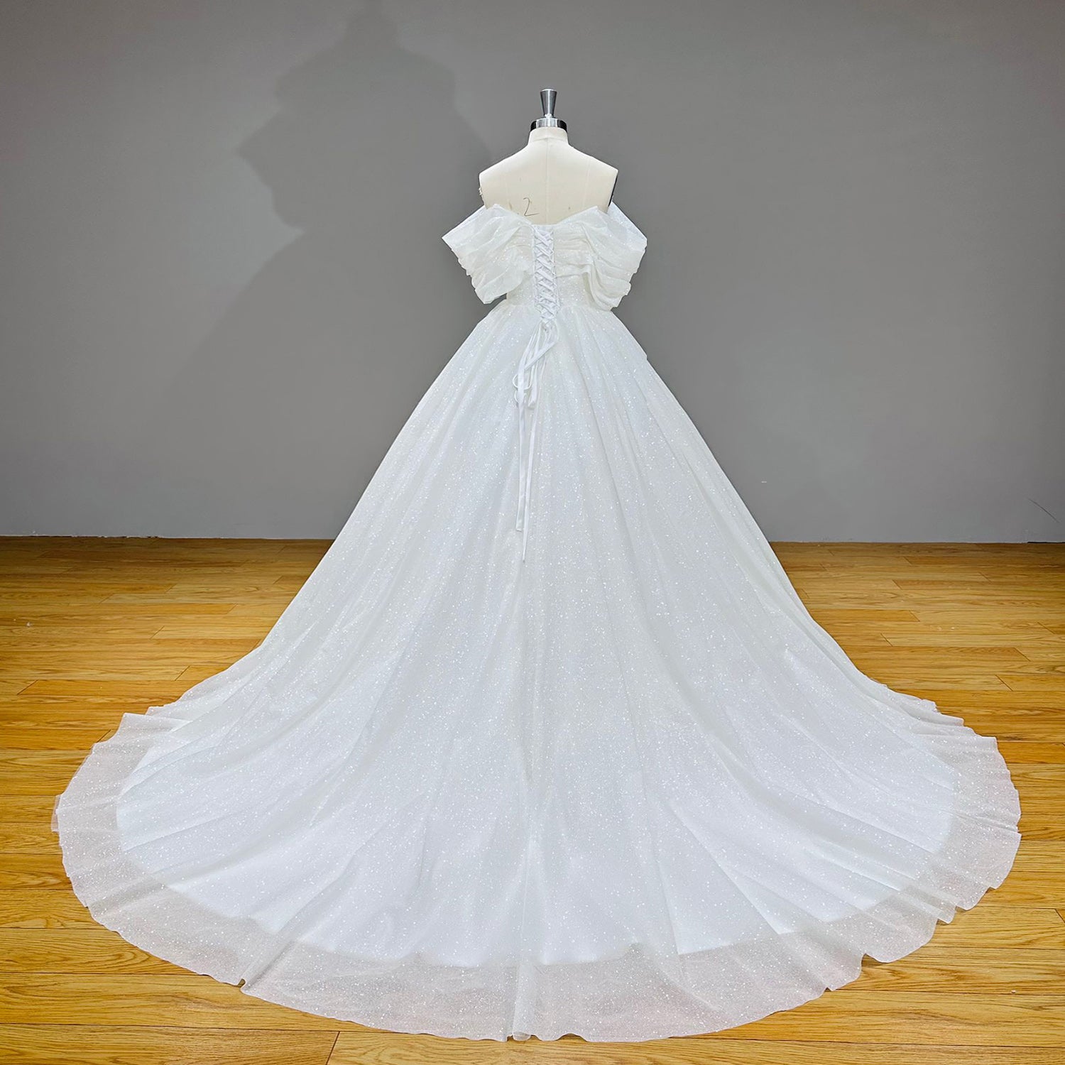 Shining Off Shoulder Vintage V Neck Wedding Dress Elegant Bridal Gown for Brides