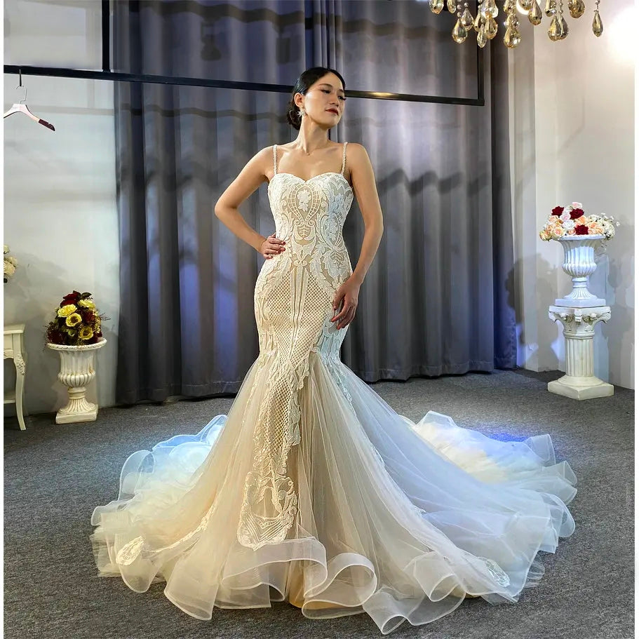 This slim lace wedding dress is crafted with elegant detailing, offering a timeless and graceful bridal look. Made with high-quality materials at an affordable factory price, it perfectly combines style and value for your special day.