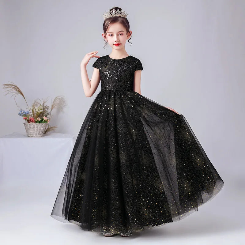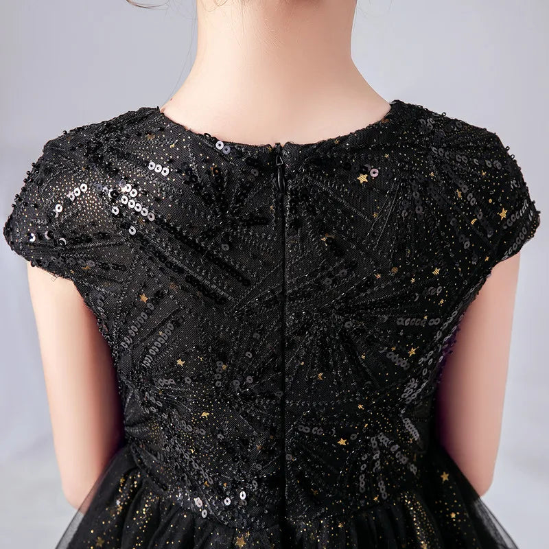 Sparkly Sequins Black Flower Girl Dress Princess Gown