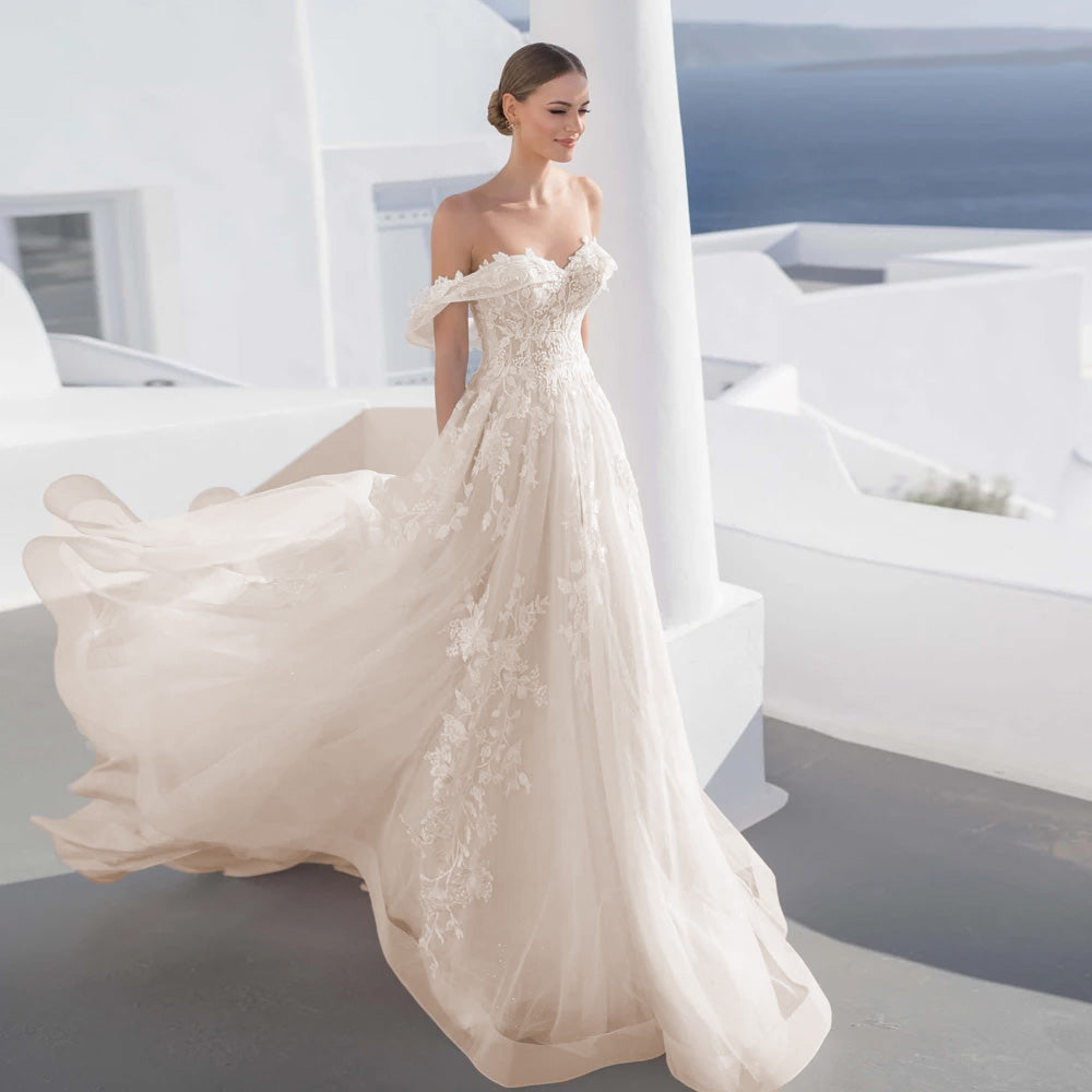 This Sweetheart Lace A-Line Vintage Wedding Dress exudes timeless elegance with its intricate lace appliqués and flattering A-line silhouette. Featuring a luxurious button-up back and a graceful court train, it’s perfect for a romantic, classic bridal look.