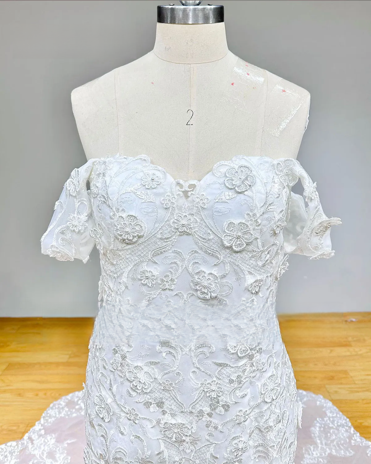 Embrace timeless elegance in this Sweetheart Neck Mermaid Wedding Dress, featuring a curve-enhancing silhouette adorned with intricate appliques, pearls, and 3D floral details. With a structured bodice, shimmering embellishments, and a graceful flare, this gown is perfect for both classic and modern bridal visions.