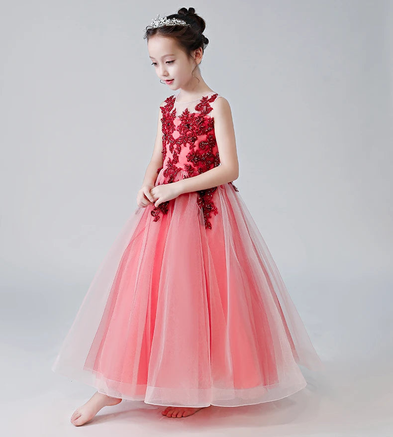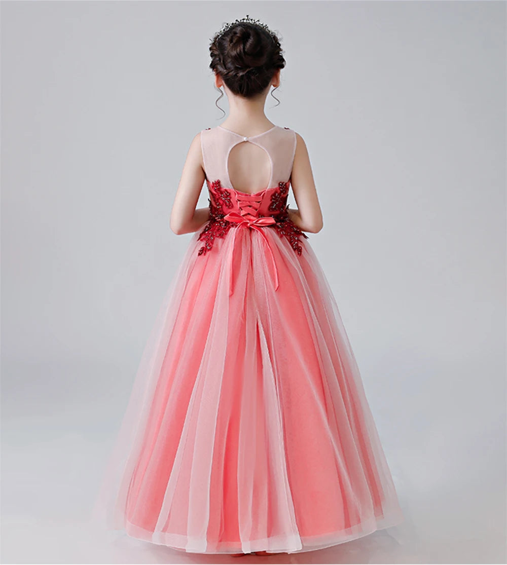 Tulle Flower Girl Dress Lace Applique Sleeveless Birthday Pageant First Communion Gown
