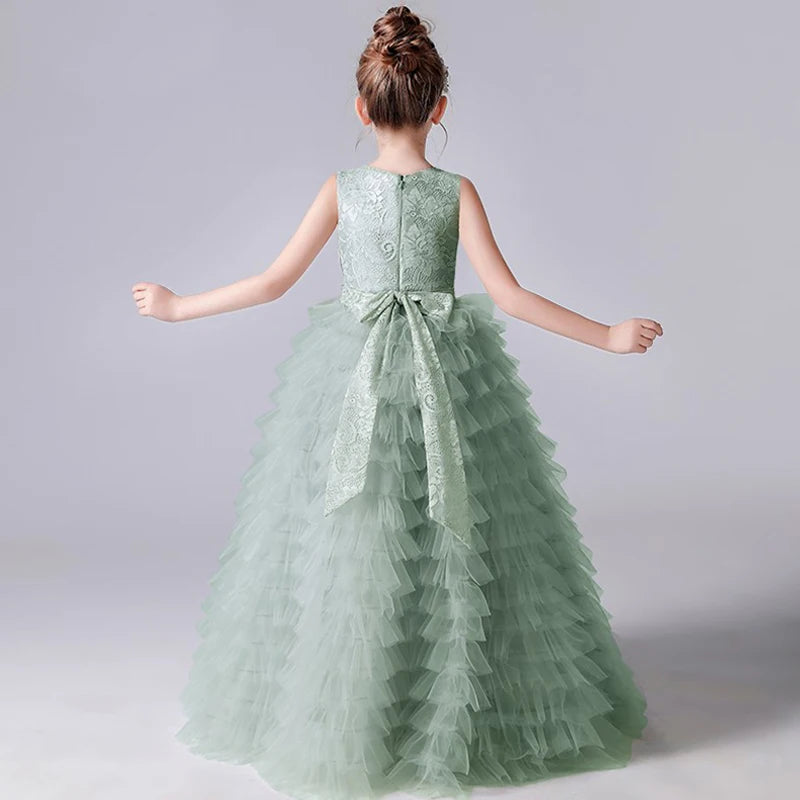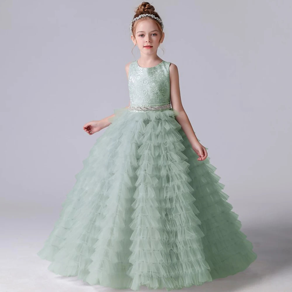 Tulle Flower Girl Sleeveless Dress Tiered Girls Princess Gown
