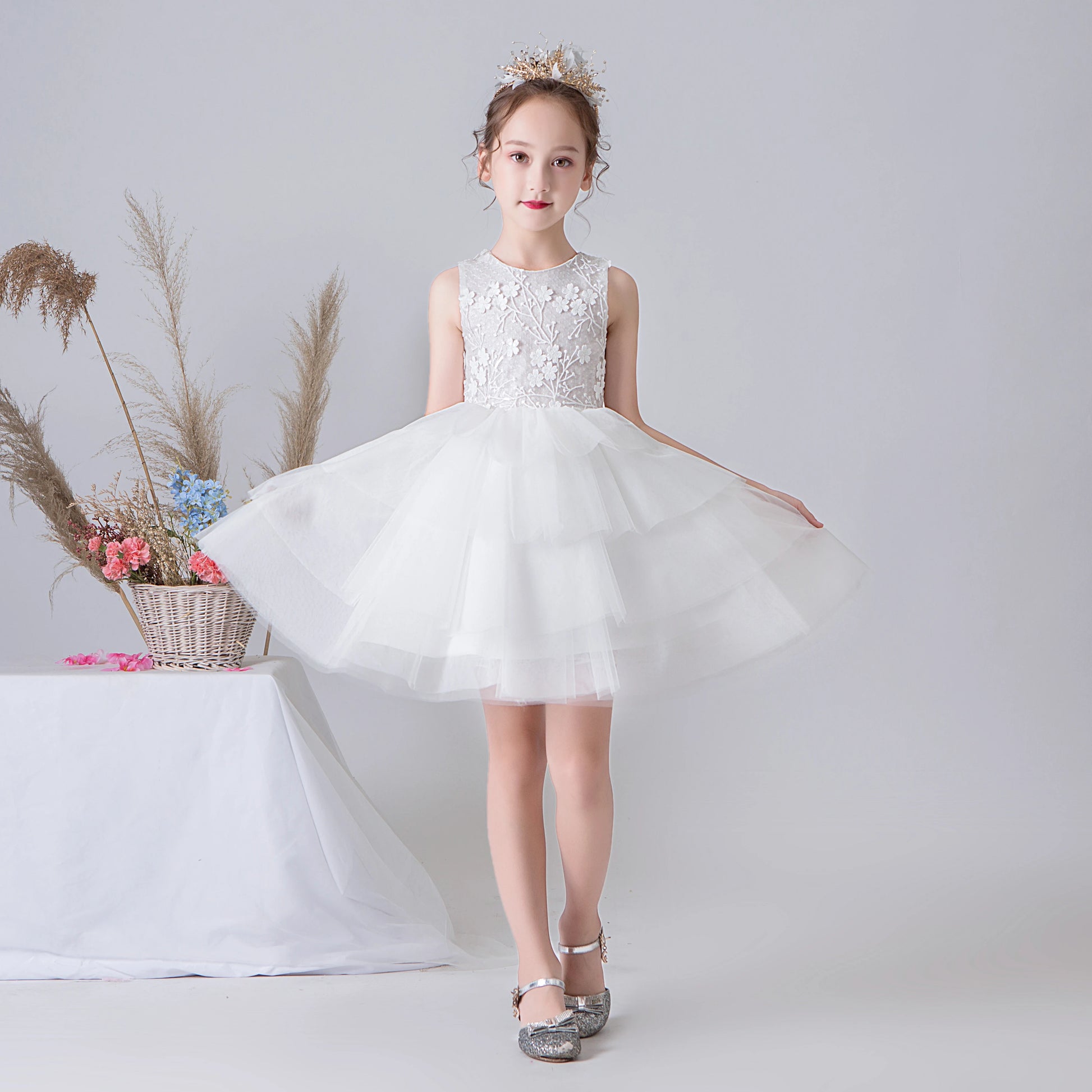White Pleats Tulle Short Formal Tutu Princess Dress Pageant Gown