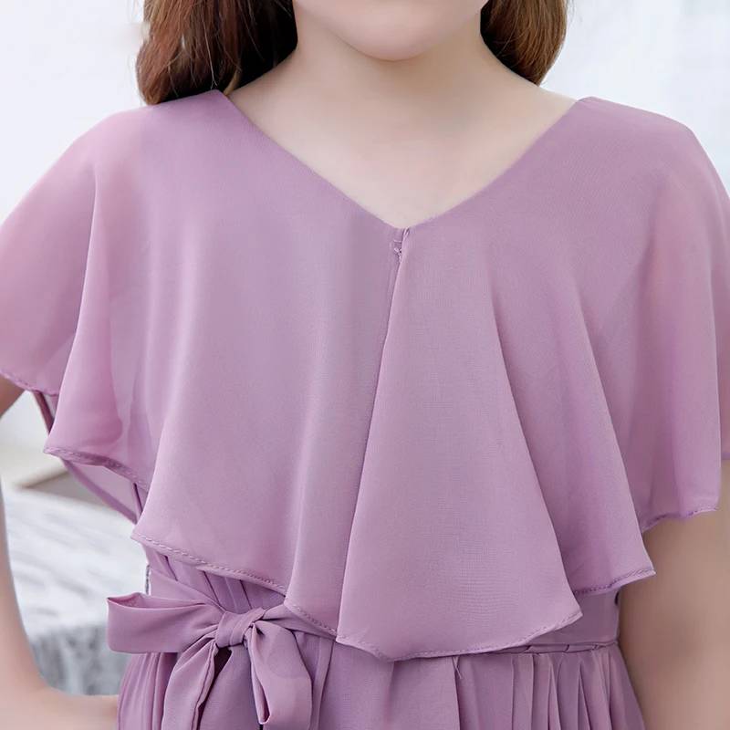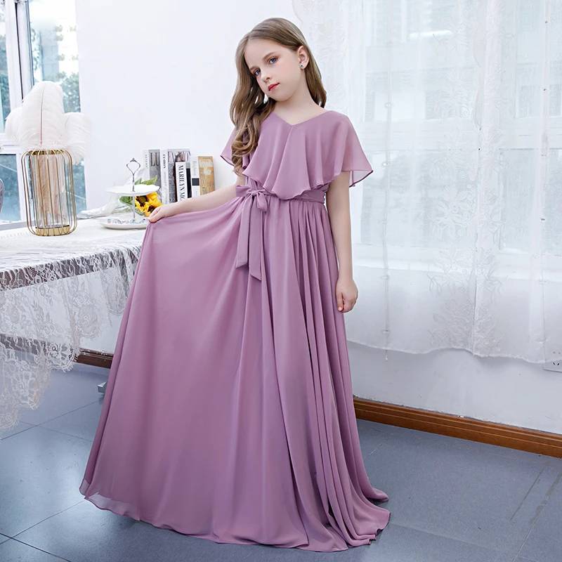 Wisteria Short Sleeve Chiffon Lace Flower Girls Dress A-Line Junior Bridesmaid Gown