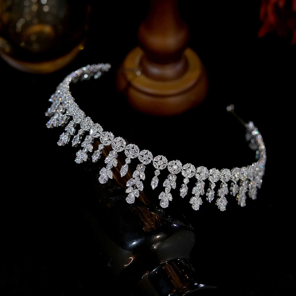 Elegant Zircon Headdress Crown perfect for brides seeking a royal touch. Ideal wedding tiara and hair accessory for timeless beauty.