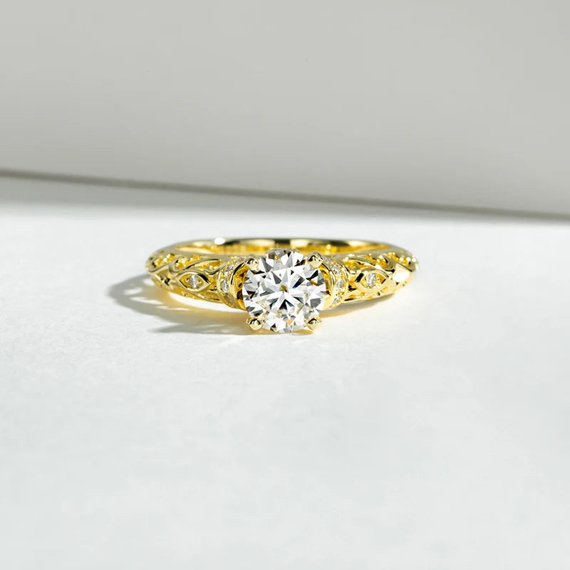 Celebrate timeless love with our 925 Sterling Silver 1 Carat Moissanite Ring, featuring a brilliant stone on a yellow band. Perfect for weddings, engagements, or anniversaries, it blends classic elegance with lasting durability and sparkle.