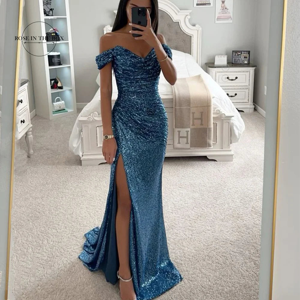 Chic Off-Shoulder Sequin Mermaid Maxi Dress 2025 Prom Party Evening Gown