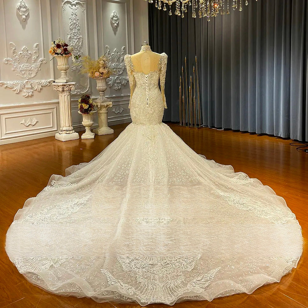 Crystal-Embellished Luxury Mermaid Wedding Dress with Long Train