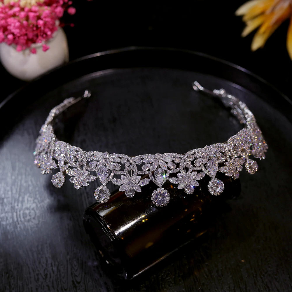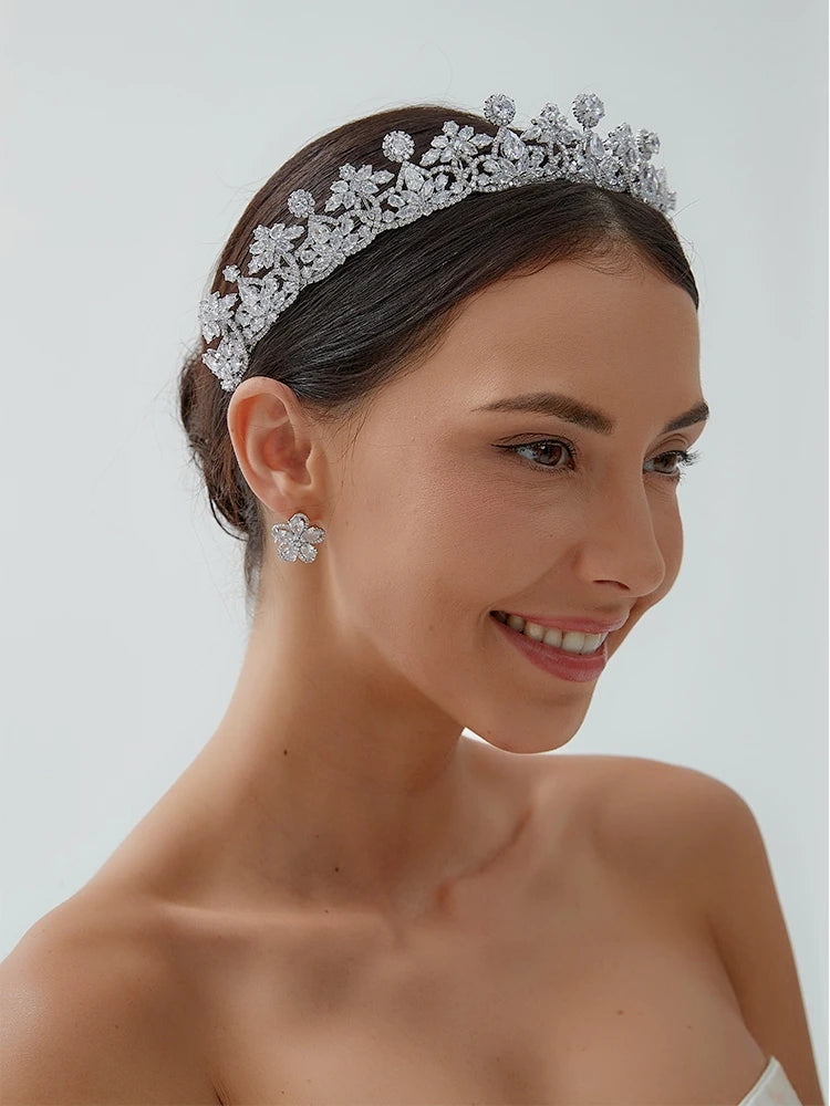 Diadem White Crystal Zircon Bridal Tiara 2024 CZ Headpiece