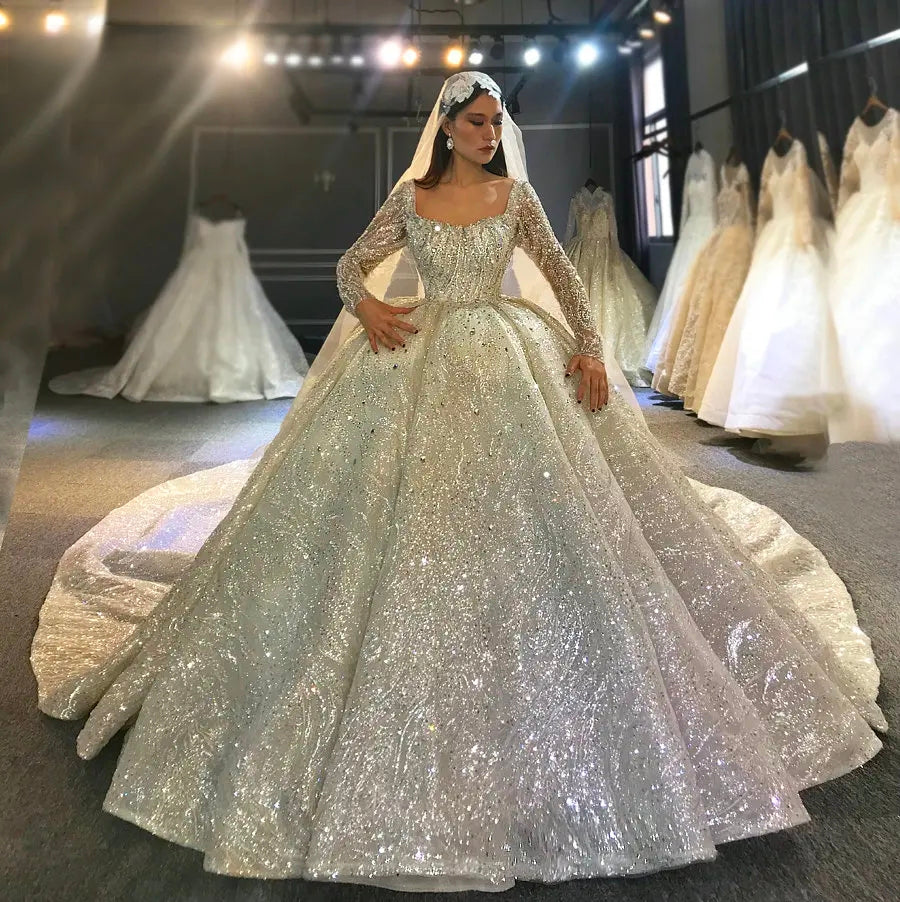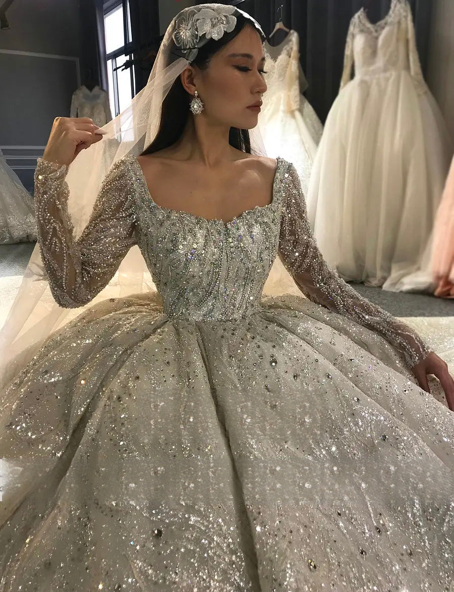 Dubai Princess Luxury Beaded Long Sleeve Wedding Dress