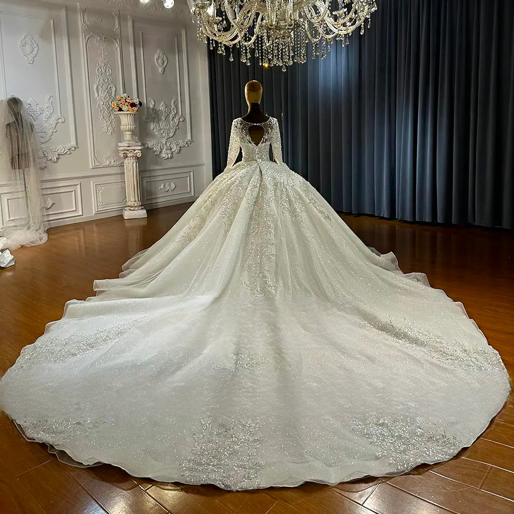 Elegant A-Line Long Sleeve Luxury Wedding Dress for Women Bridal Gown