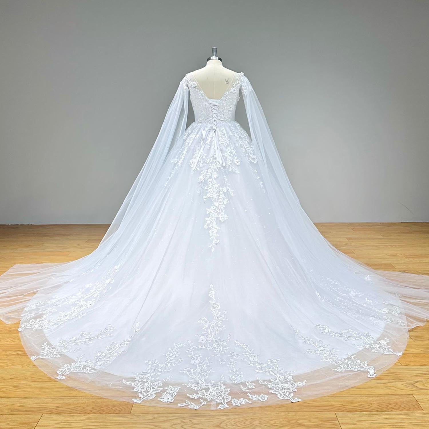 Elegant Backless Ball Gown Wedding Dress with Long Shawl Sleeves and Vintage