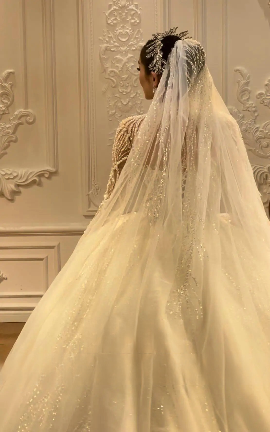 Step into a fairytale with this Elegant Beaded Ball Gown Wedding Dress, featuring exquisite beadwork, long sleeves, and a voluminous skirt for a timeless, regal silhouette. Crafted from premium fabrics with intricate detailing, it offers luxurious comfort and sophistication—perfect for classic, royal-inspired weddings.