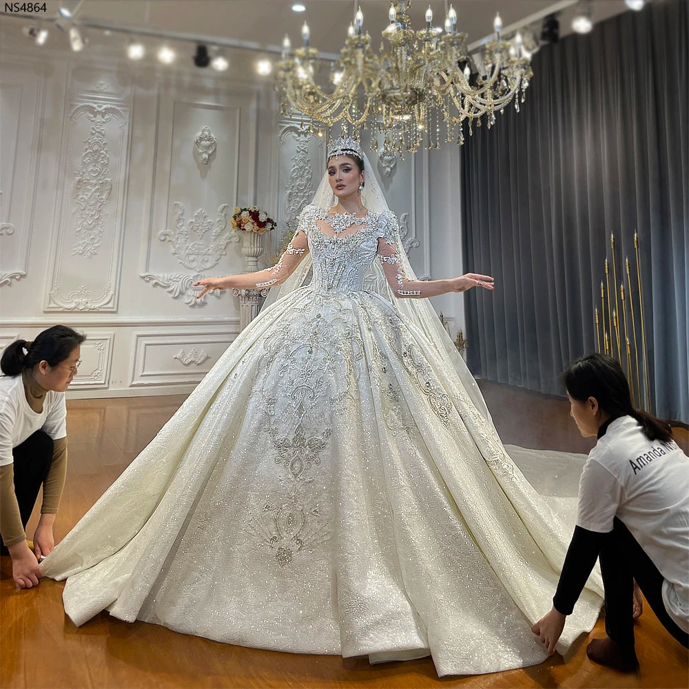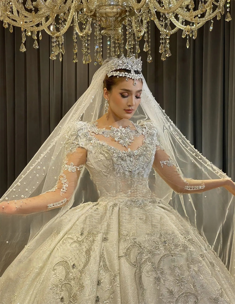 Empire Lace Appliquéd Crystal Wedding Dress with Luxurious Detailing