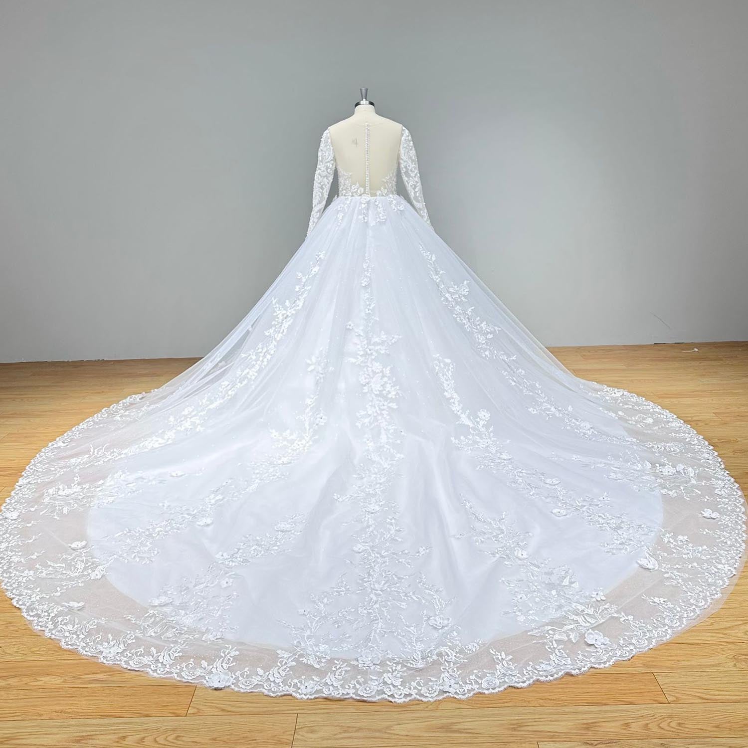 Hire Lnyer Long Sleeve Beaded Ball Gown Wedding Dress with Train