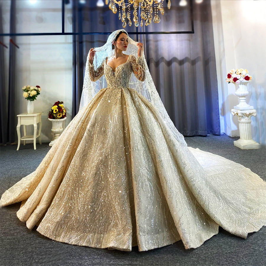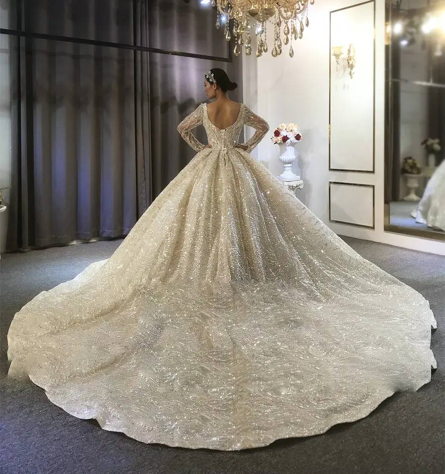 This full beaded wedding dress with long sleeves exudes elegance and luxury, featuring intricate high-quality beading that sparkles with every movement. The timeless silhouette, combined with modern details and exquisite craftsmanship, makes it the perfect choice for brides seeking sophistication and glamour on their special day.