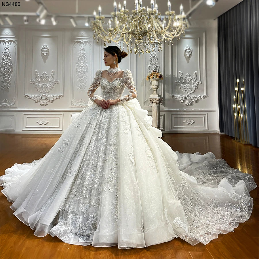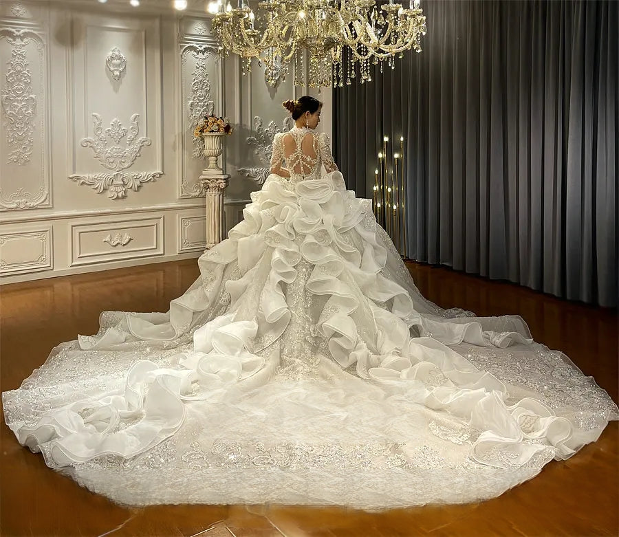 Lace Applique Crystal Beading Royal Train Luxury Wedding Dress