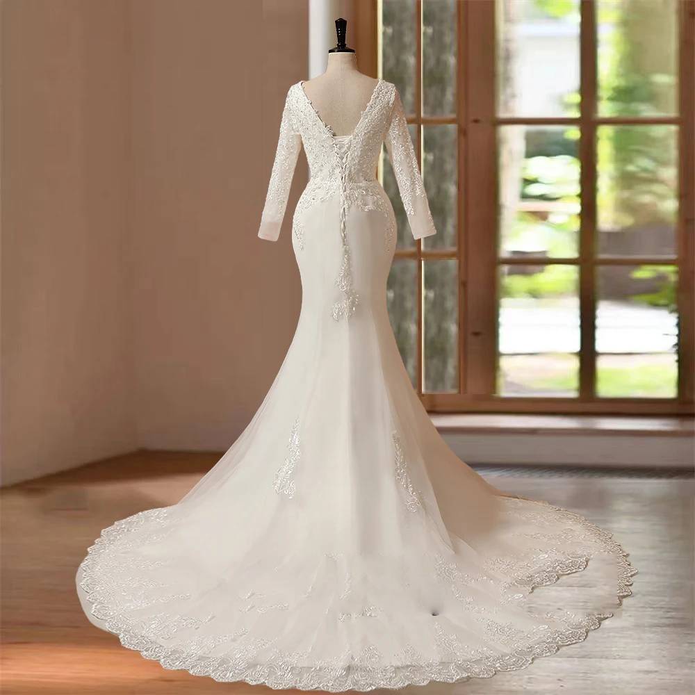 Long Sleeves O-Neck Mermaid Wedding Dress for Bride