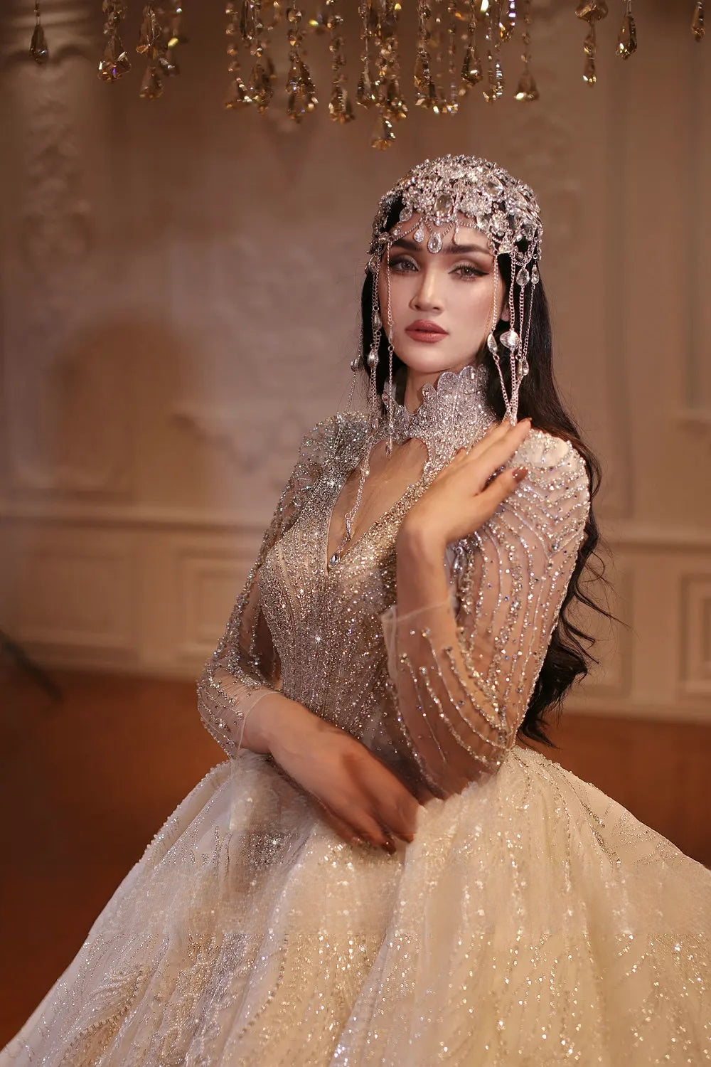 Step into timeless elegance with our Luxury Dubai Style Wedding Dress, featuring exquisite hand-beaded craftsmanship and luxurious fabric for a regal, sophisticated look. Designed to flatter your silhouette and captivate with sparkling details, this gown ensures you shine with grace and confidence on your special day.