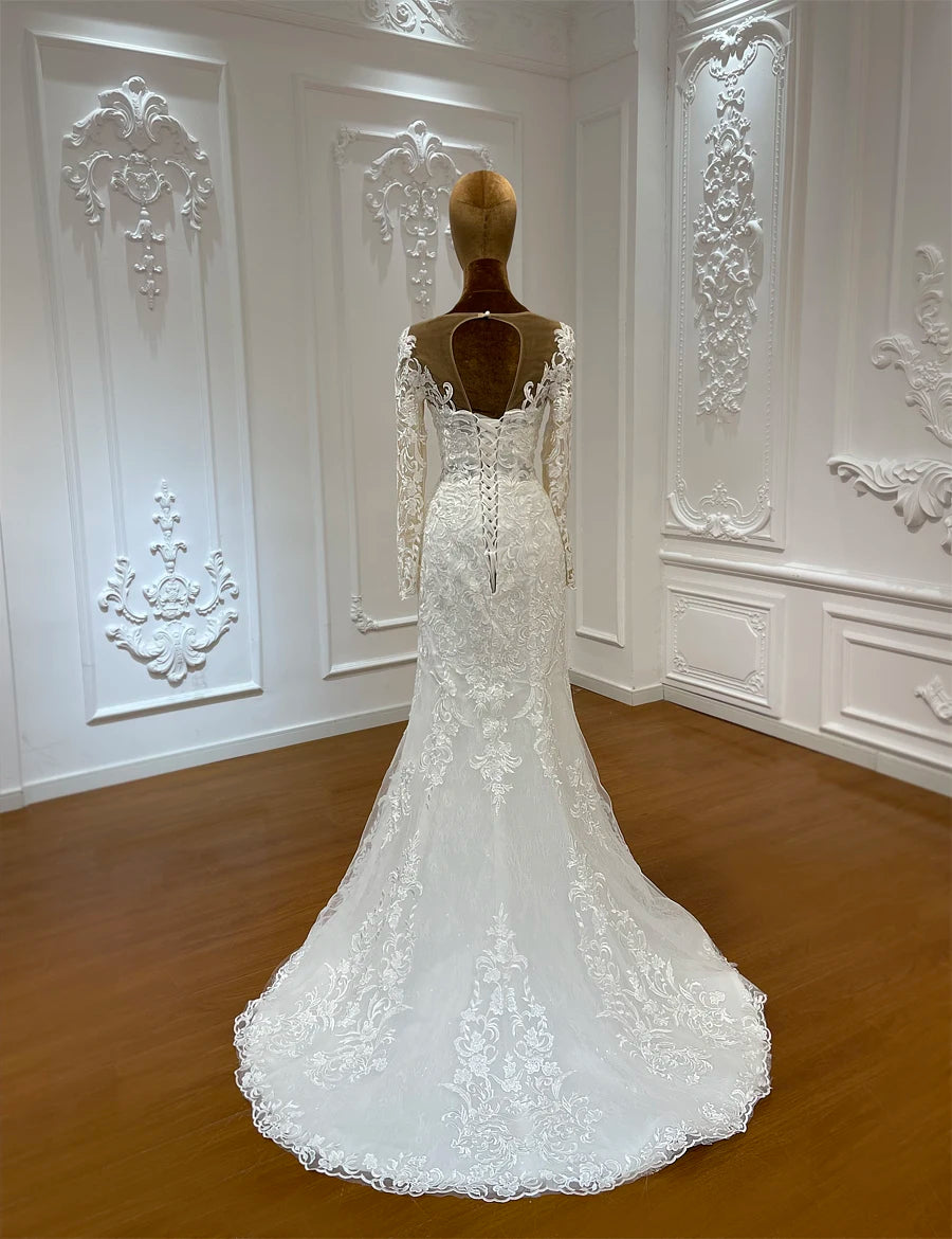 Make a statement on your big day with this Luxury Full Lace Two-Piece Mermaid Wedding Dress featuring a detachable ball gown skirt. Designed for elegance and versatility, it blends romantic lace details with a sleek silhouette for a truly unforgettable bridal look.
