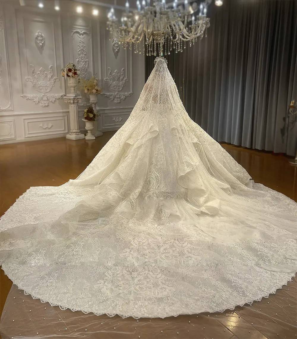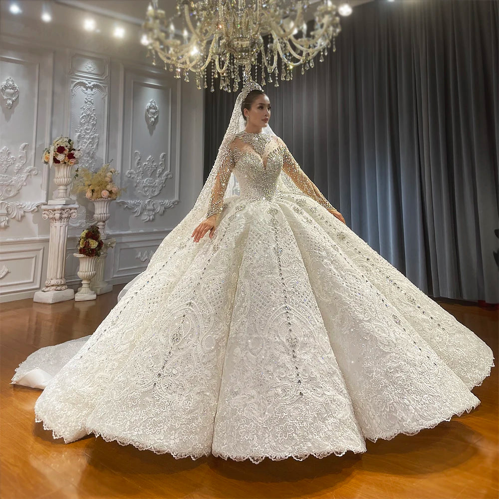 Make a grand entrance in this Luxury Ball Gown Wedding Dress adorned with rhinestone embellishments, featuring a voluminous skirt and a beautifully structured bodice that exudes elegance and sparkle. Perfect for fairytale weddings, this exquisite gown offers timeless charm, fine craftsmanship, and customizable options for a flawless fit.